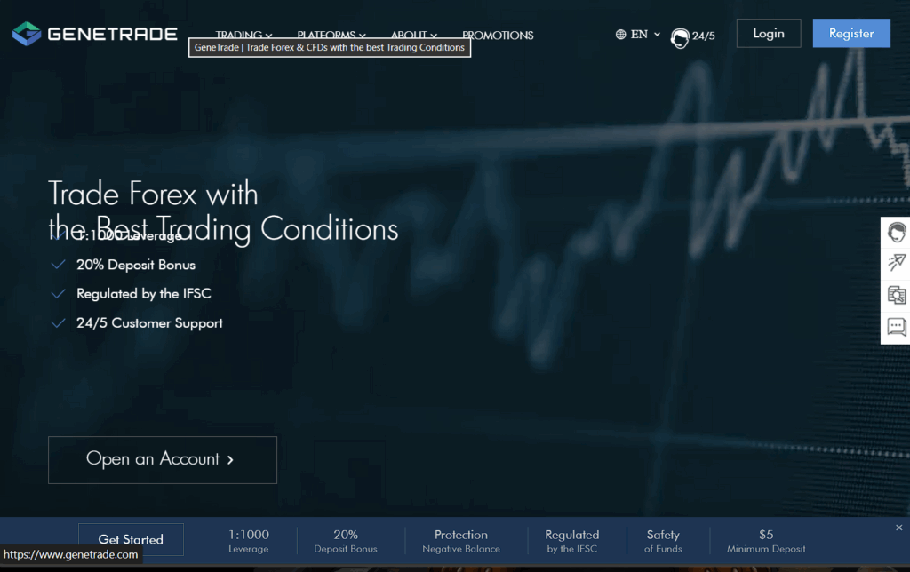 In the search for the right online broker, traders are bombarded with platforms promising the best conditions. Genetrade.com stands out immediately with its bold offer of “1:1000 Leverage” and a “20% Deposit Bonus.” Its website projects an image of security, speed, and professionalism, complete with claims of being “Regulated by the IFSC.” For many, especially newer traders, this combination seems like an unbeatable opportunity. However, in the world of online trading, the most attractive offers often conceal the highest risks. This critical review of Genetrade.com moves beyond the marketing slogans to analyze the reality of its regulatory framework, its dangerously incentivized business model, and why it operates in a space that top-tier regulators explicitly warn against. Understanding these details is crucial to protecting your capital.