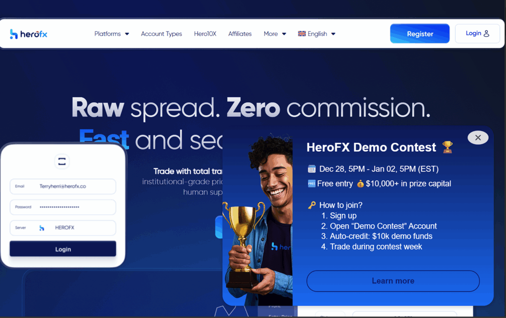 In the competitive online trading arena, Herofx.co (HeroFX) makes a bold entrance. It promises traders “raw spreads,” “zero commissions,” and a next-generation experience on the TradeLocker platform. Its marketing revolves around three appealing principles: Innovation. Community. Integrity. But can a broker truly uphold integrity without the most fundamental safeguard of all? This review critically examines HeroFX to see if its modern facade hides the critical flaws common to high-risk, unregulated platforms.