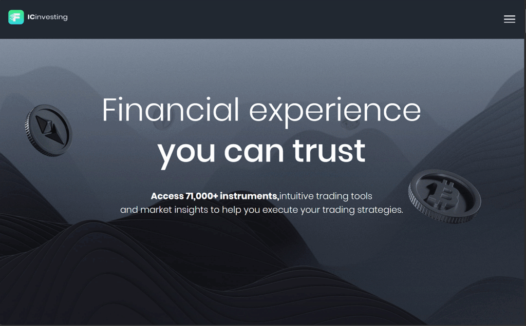 The initial experience with the ICInvesting.com platform reveals a professionally designed interface. The website utilizes the dark theme common in financial services, featuring real-time charts, market news tickers, and polished graphics. This visual presentation is crafted to instill immediate confidence in visitors.