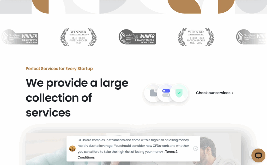 The headline claim of being the “N°1 Fintech Broker in Asia 2024” is presented without evidence.