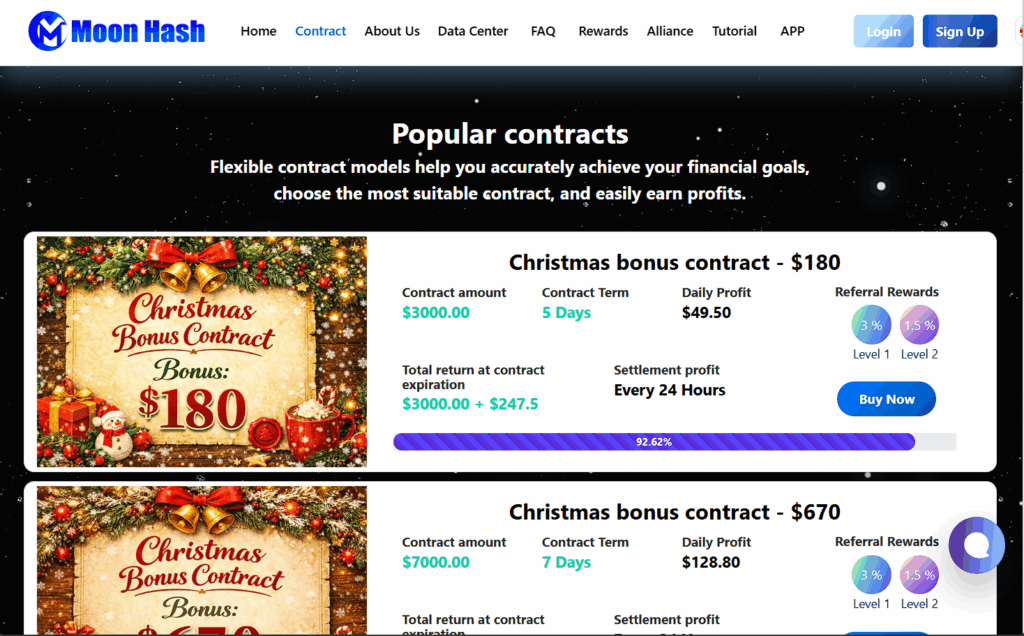 The most glaring red flag is the promotion of fixed, high-yield investment contracts. Cryptocurrency mining and AI computation are subject to extreme market volatility, fluctuating hardware efficiency, and variable electricity costs. It is financially impossible for any platform to guarantee a specific daily dollar profit, as Moonhash does. This model is only sustainable if new investor deposits are continuously used to pay “returns” to earlier participants the classic definition of a Ponzi scheme. This structure inevitably collapses when the inflow of new money slows.