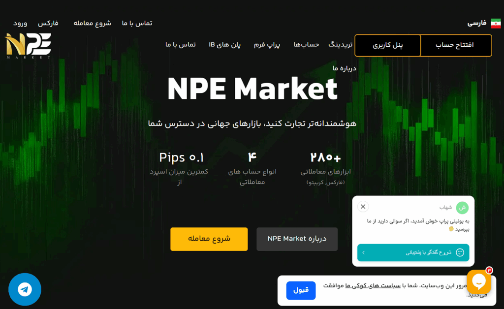 The most serious concern regarding NPE Market is its regulatory status, or complete lack thereof. While the website uses the phrase “مقررات معتبر جهانی” (“valid global regulations”), it fails to disclose a single regulatory license number, issuing authority, or jurisdiction of operation.