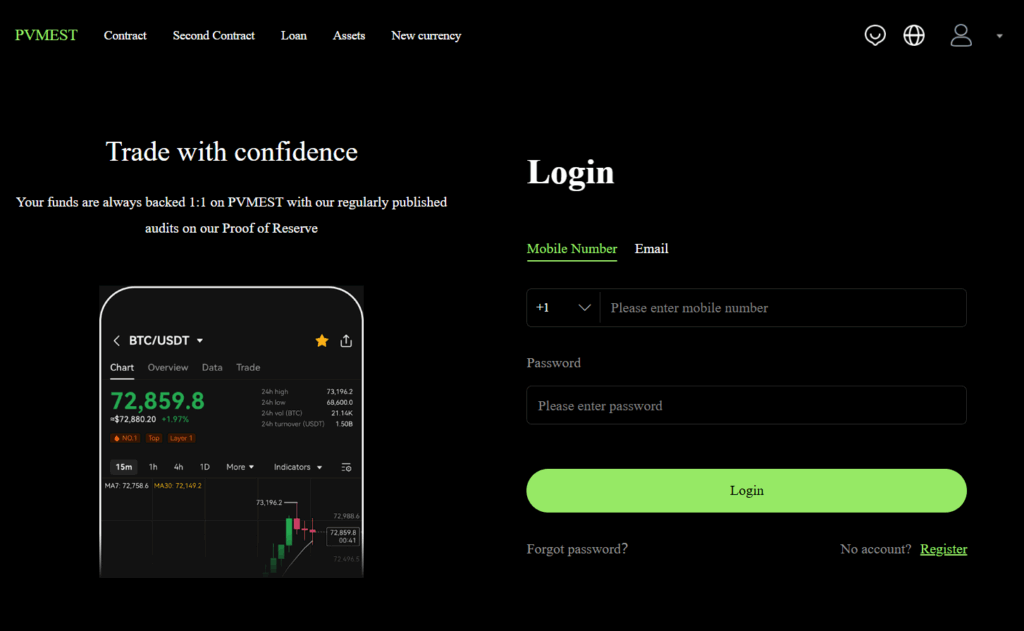A visit to the Pvmestcapital.net website reveals a minimalist, login-focused interface. The design is sleek and modern, which can initially project an image of professionalism and security. The most prominent element on the page is the claim: “Your funds are always backed 1:1 on PVMEST with our regularly published audits on our Proof of Reserve.” This statement is clearly intended to be the cornerstone of the platform’s trust proposition, directly addressing a primary concern for any investor: the safety of their capital.