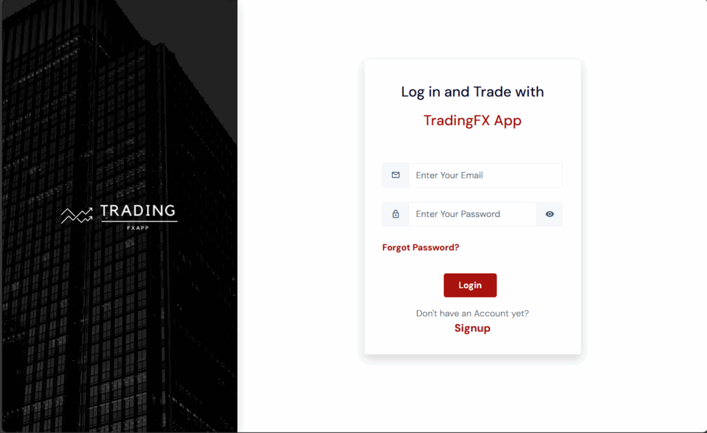 The TradingFX App portal makes a specific first impression. Unlike many financial websites cluttered with information, portal.tradingfxapp.me is strikingly minimalist.