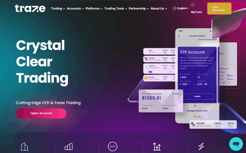 On first glance, Traze’s website may look polished: clean design, clear product pages, short videos or screenshots, and prominent calls to action (“Open account,” “Get started,” “Book a demo”). The tone is confident and benefit-oriented.