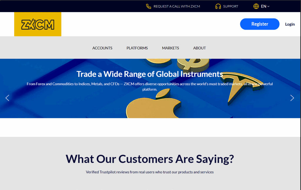 From the moment you land on its homepage, ZXCM projects an image of efficiency and global capability. The website highlights core features designed to resonate with active traders: